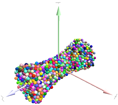 In some cases, you might want to create rigid aggregate of individual particles (i.e. particles will retain their mutual position during simulation). This we call a clump. A clump is internally represented by a special body, referenced by clumpId of its members (see also isClump, isClumpMember and isStandalone). Like every body a clump has a position, which is the (mass) balance point between all members. A clump body itself has no interactions with other bodies. Interactions between clumps is represented by interactions between clump members. There are no interactions between clump members of the same clump.