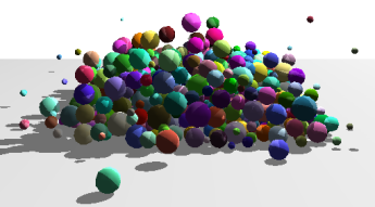 Gravity test can be performed with rough walls (on the left), where each wall is build out of spheres placed in a regular order. Spheres of granular material 'fall' into holes between spheres of the walls, thus wall is rough. Or walls can be represented as ideal box (on the right), and their surface is totally smooth. This results in higher gravity compaction of the speciemen.